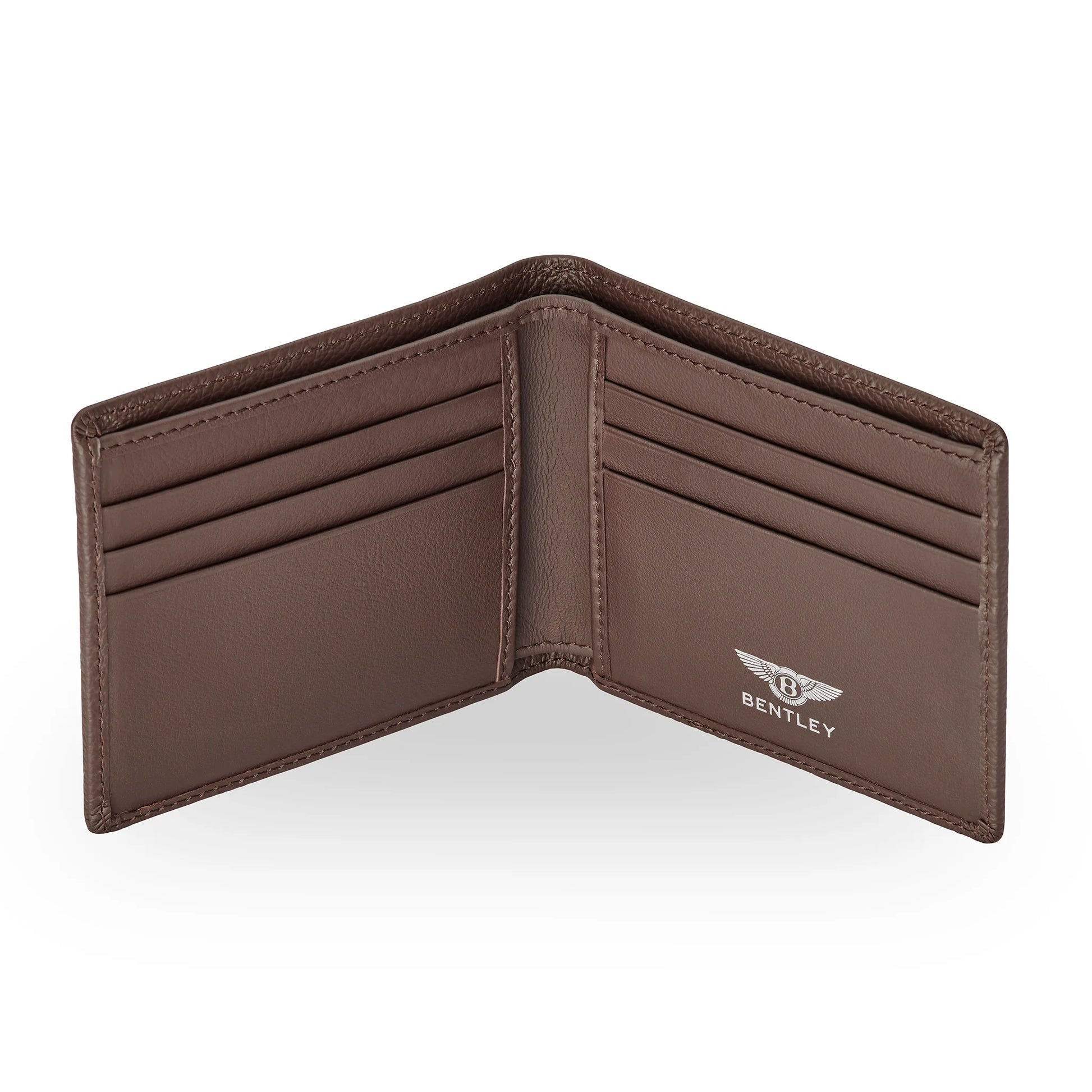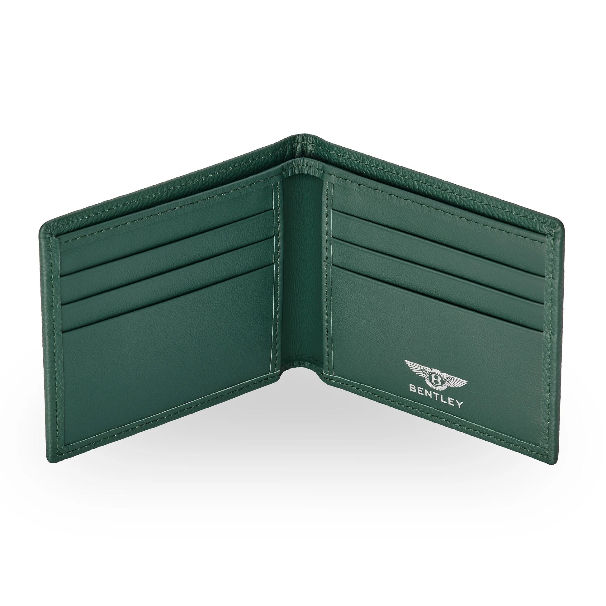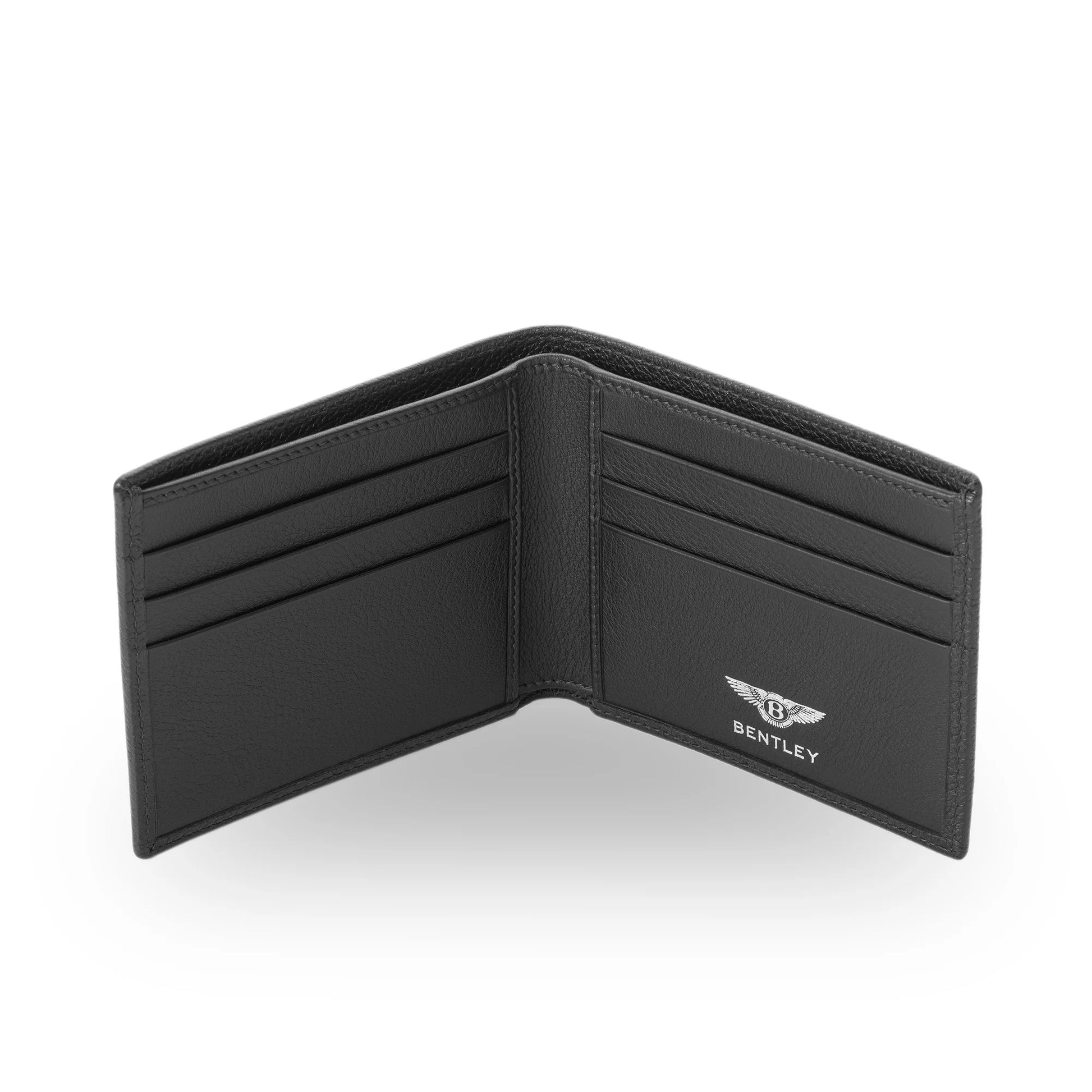 Crafted from Italian leather, this traditional wallet opens to reveal six card pouches and two sections for cash and receipts. Available in Black, Green and Burnt Oak, the soft-grained calf leather exterior features a debossed Bentley emblem, whilst the smooth leather interior features a debossed logo in silver foil. A smart addition to your everyday accessories collection.