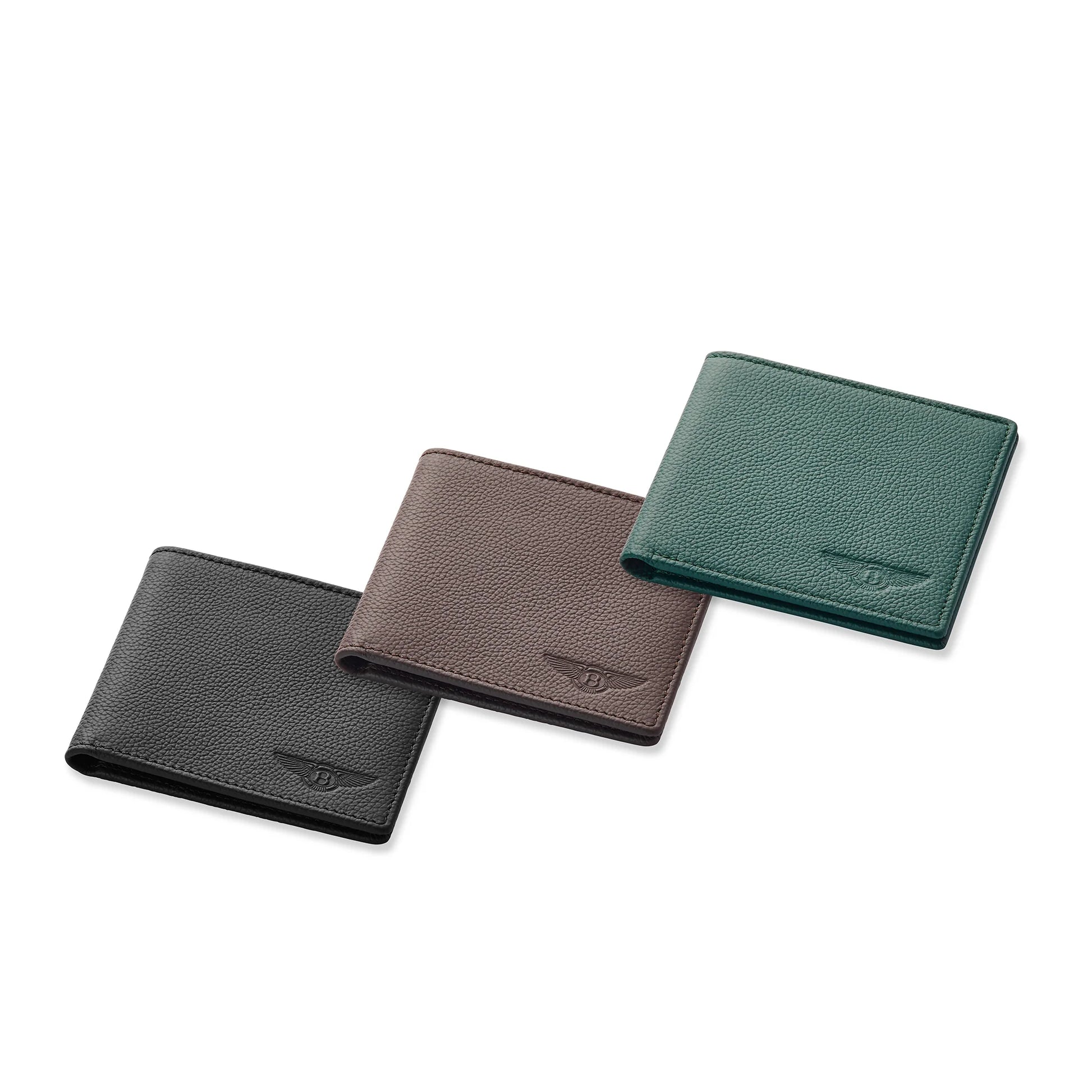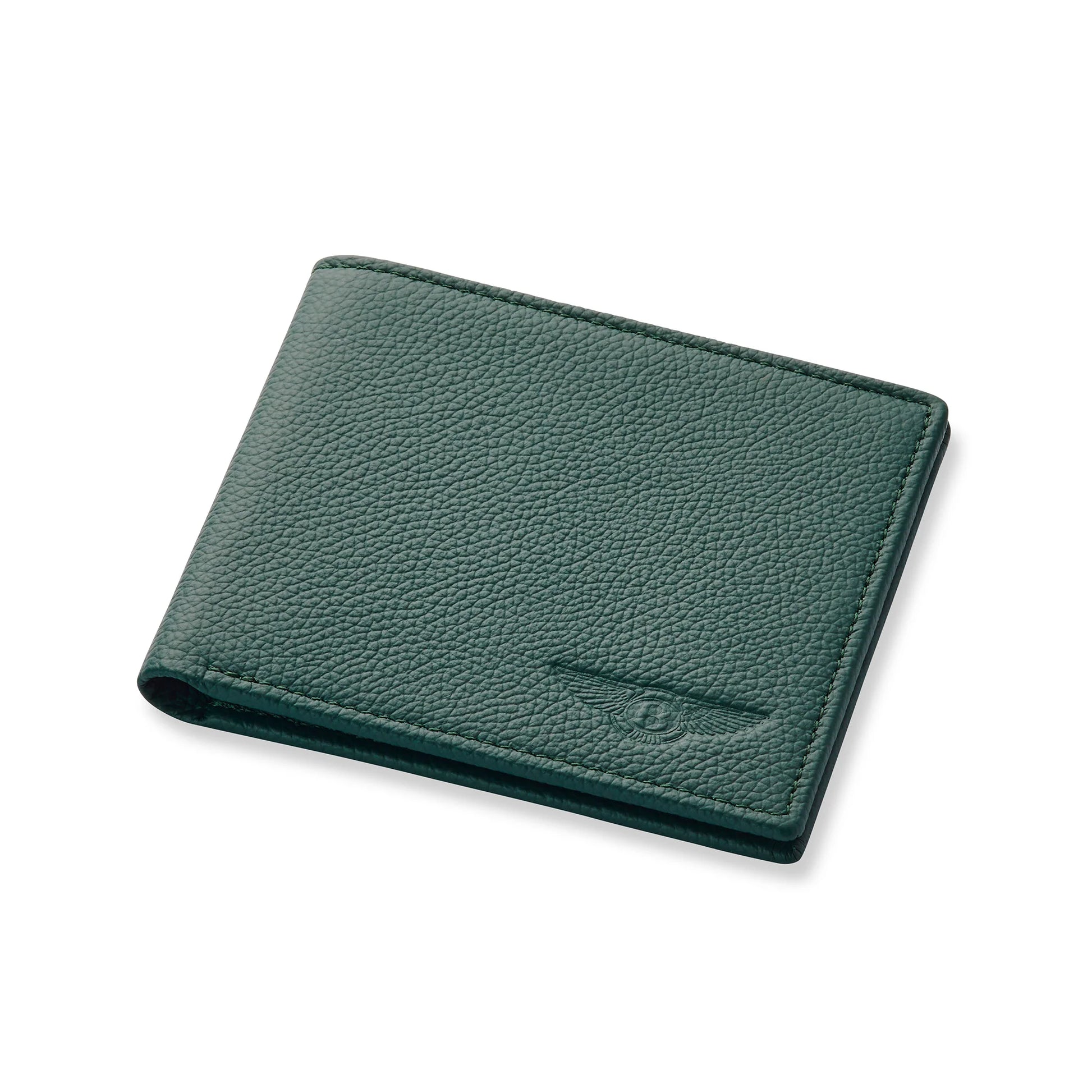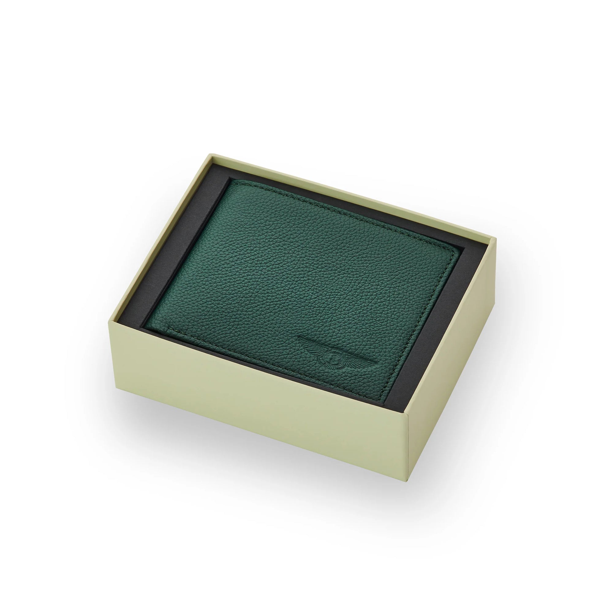 Crafted from Italian leather, this traditional wallet opens to reveal six card pouches and two sections for cash and receipts. Available in Black, Green and Burnt Oak, the soft-grained calf leather exterior features a debossed Bentley emblem, whilst the smooth leather interior features a debossed logo in silver foil. A smart addition to your everyday accessories collection.