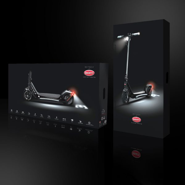 The battery life covers approximately 22 miles. Replenishing the battery will take four hours to charge on a regular home, office, coffee shop, or any plug-on-the-wall charge point outlet. Furthermore, the Bugatti scooter is capable of riding in three different types of settings: Economy mode (9mph), City mode (12.5mph) and Sport mode (18.6mph). This scooter is perfect for local commuting and extremely fun, whether needing to quickly arrive at a local destination, or simply looking for a joy ride.