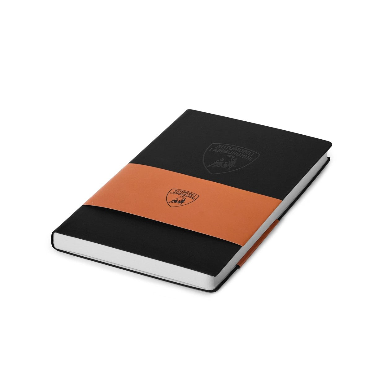 Automobili Lamborghini paper notepad with hard cover, customised with tonal logo shield.
