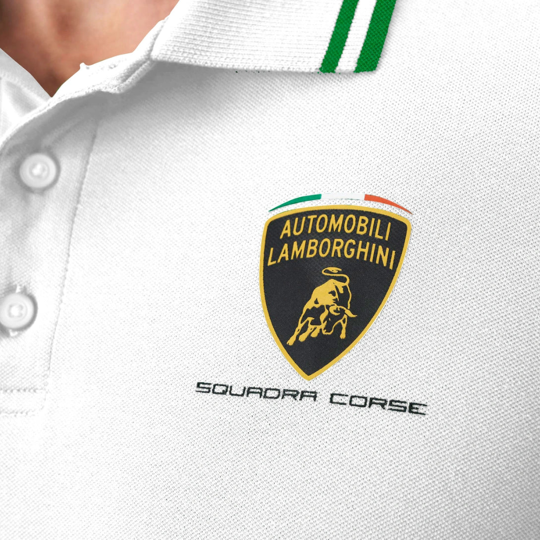 This unique garment is embellished with the tricolor flag on the sleeve and the Automobili Lamborghini Squadra Corse logo.