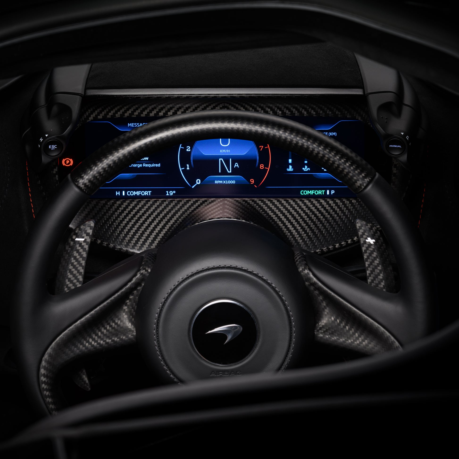 Finished in Satin Carbon Fiber matching the Carbon Fiber used elsewhere in the vehicle’s cabin. Available to order as a standalone accessory.