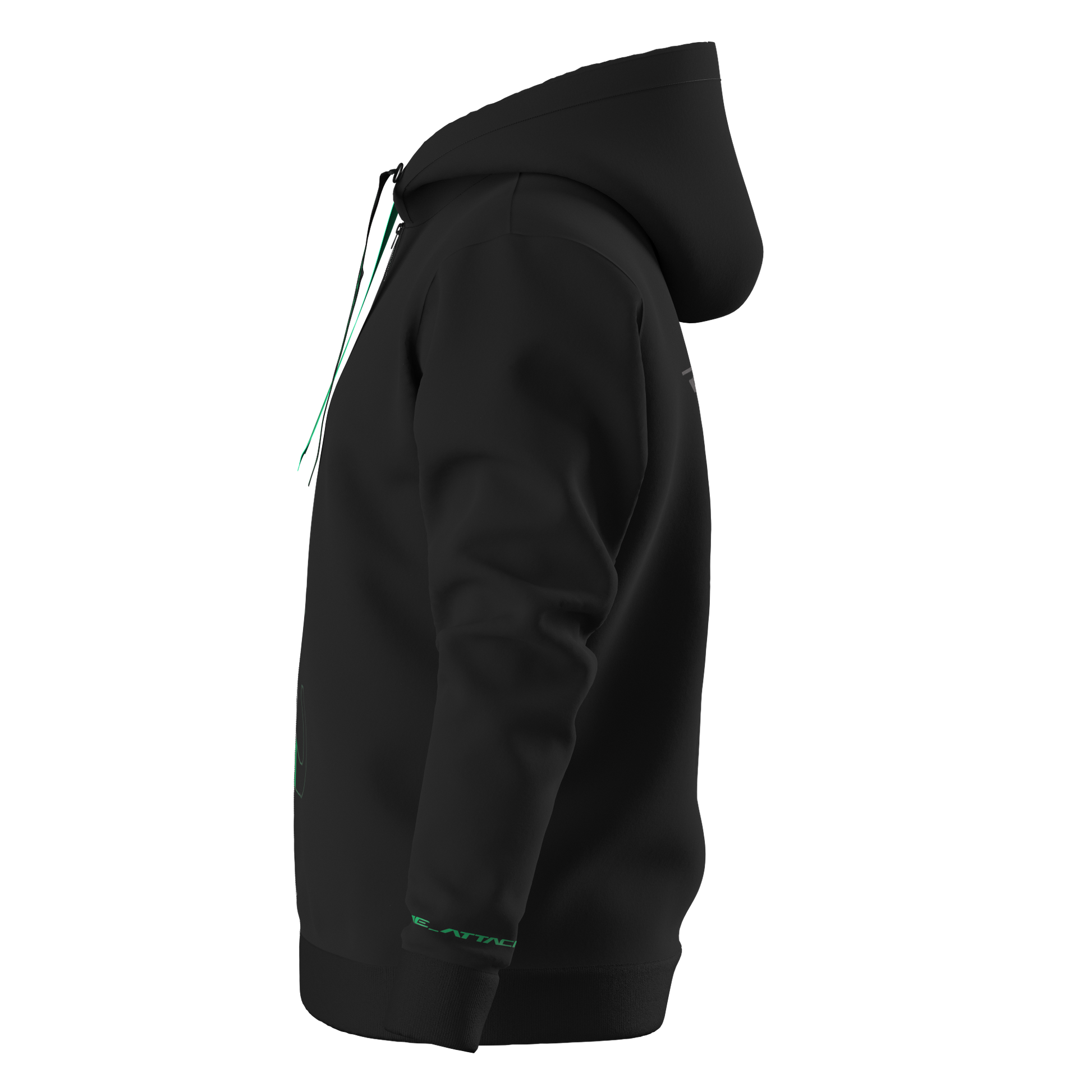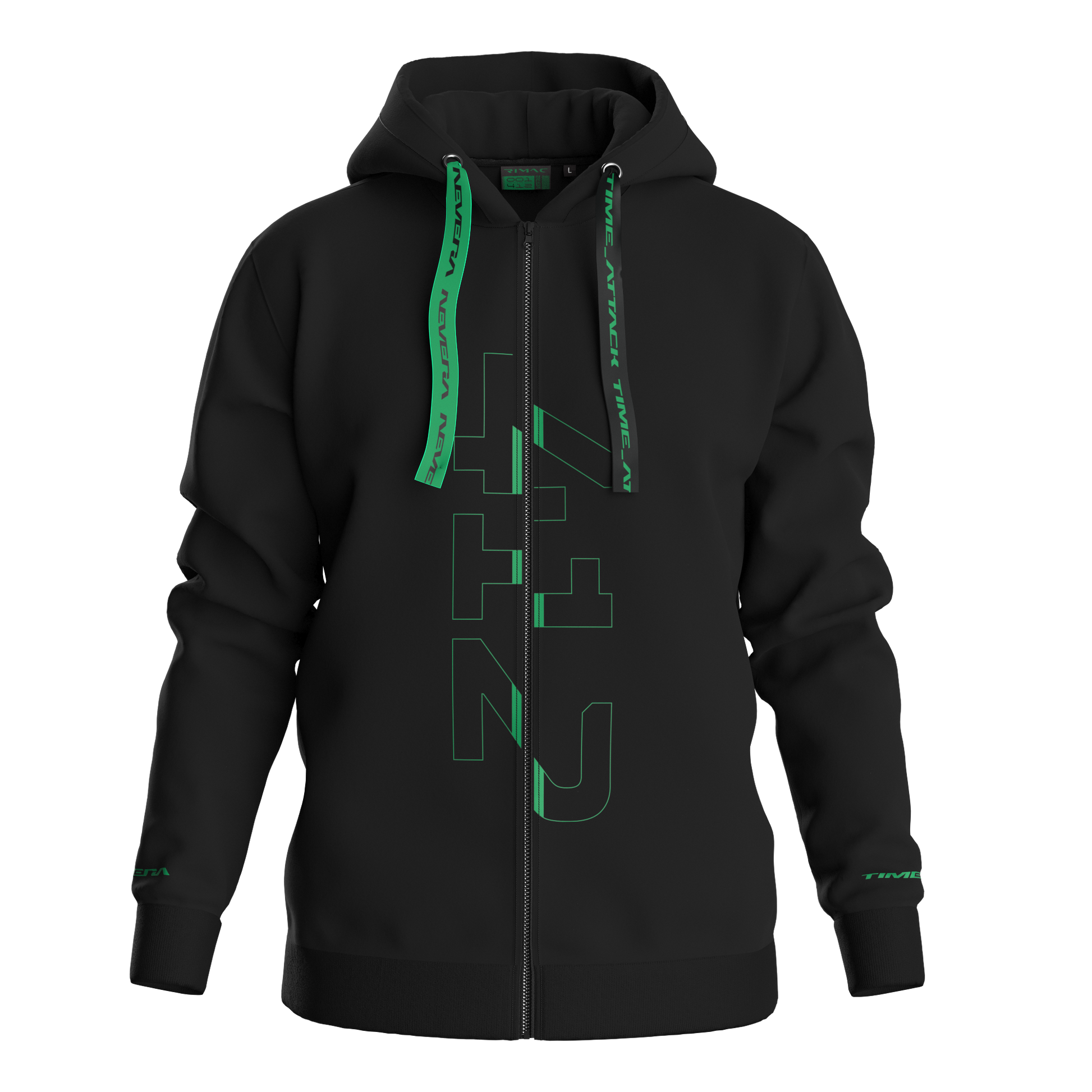 Green “412” graphic in the front – a reference to record breaking 412 km/h EV top speed and green “Time Attack” prints on the cuffs of both sleeves.