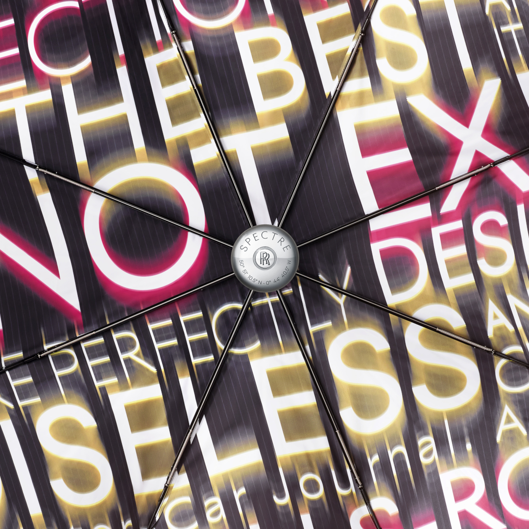 The iconic Rolls-Royce Umbrella has been reimagined to mark Spectre’s arrival and is only available during the first year of the motor car’s launch.